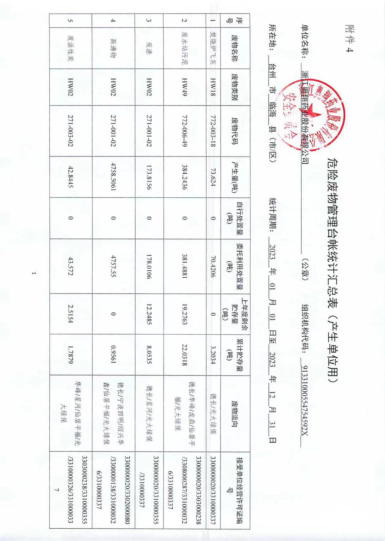 乐鱼网页版·官方站网站2023年危险废物管理台帐统计汇总表
